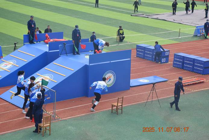 本次大赛以“消防青春志,安全家国行”为主题,共有来自全省120所高校的1200余名师生同台竞技,赛程设七大高仿真关卡,复刻真实消防场景,展开119米实战赛道“沉浸式”闯关,大赛全方位考验参赛选手的应急处置、团队协作与心理素质。